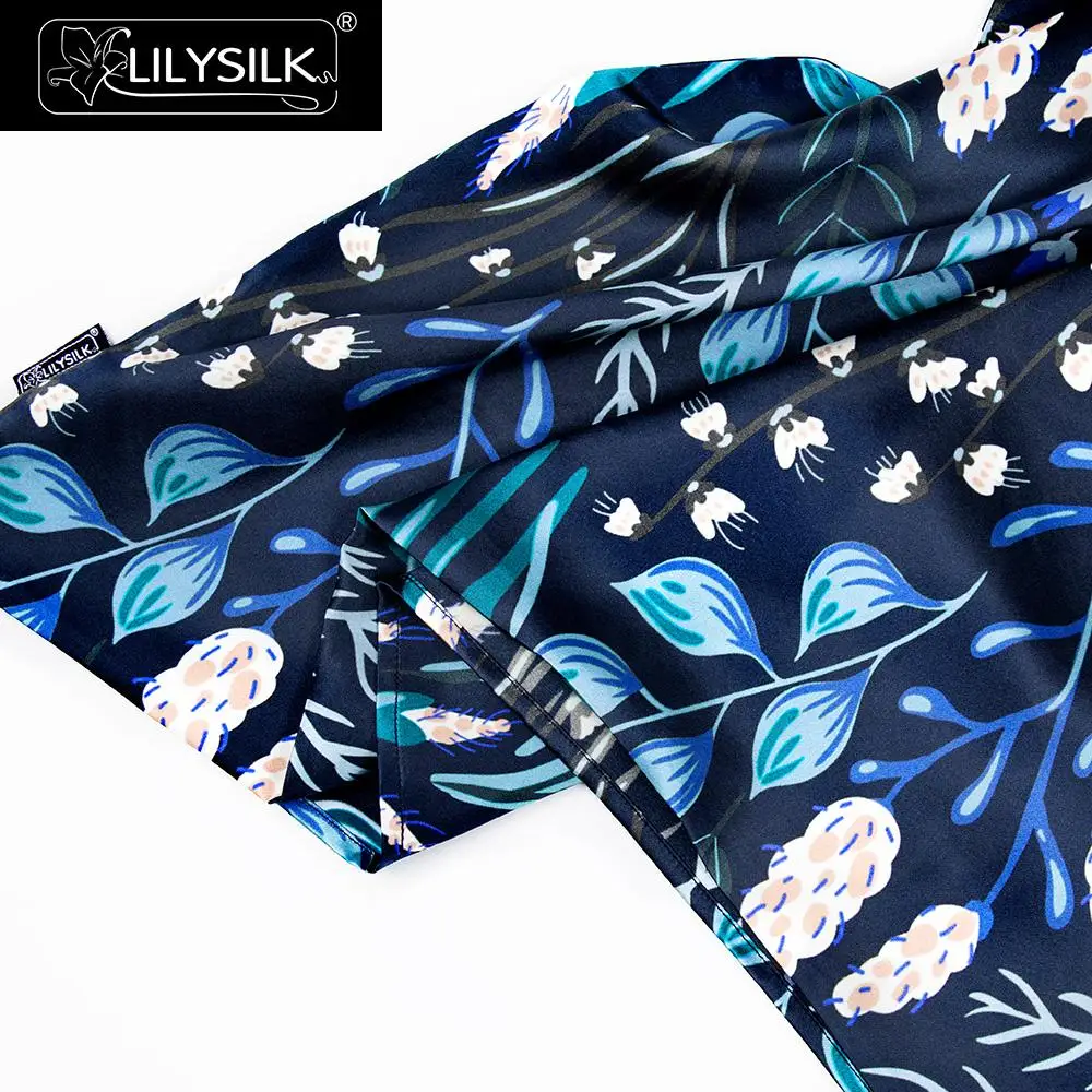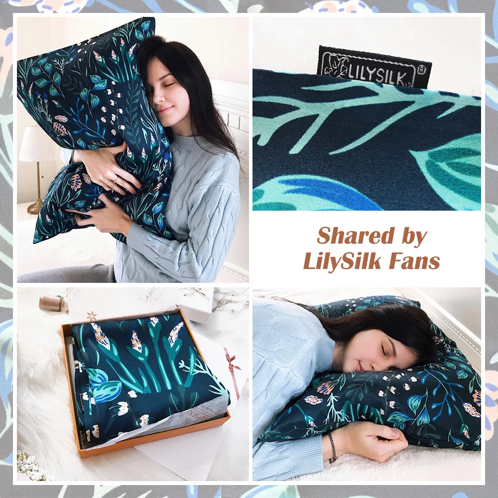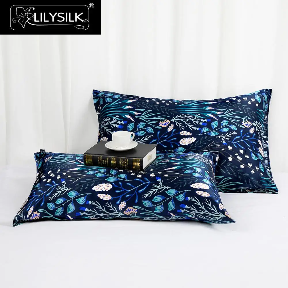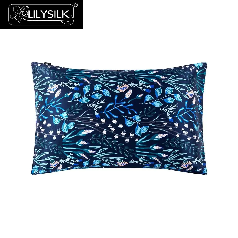 LilySilk Silk Pillowcase 19 Momme Blue Painting Terse White Flower with Blue Free Shipping
