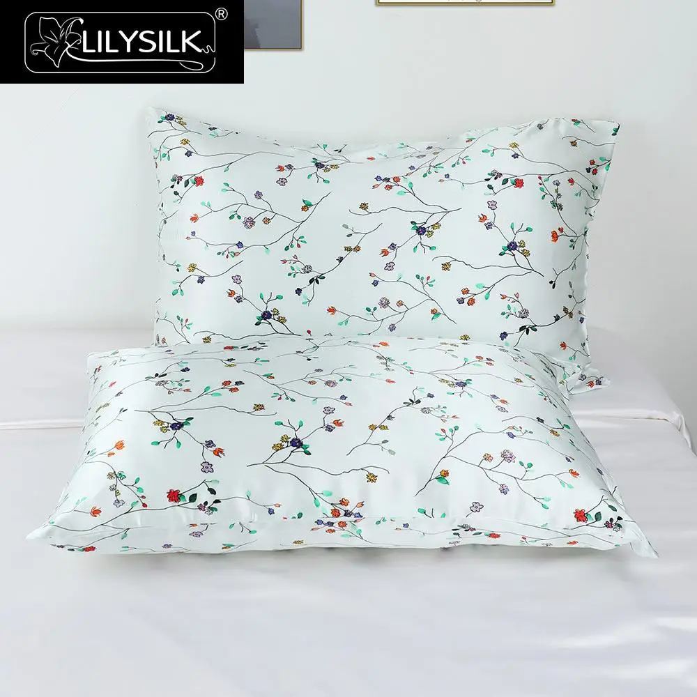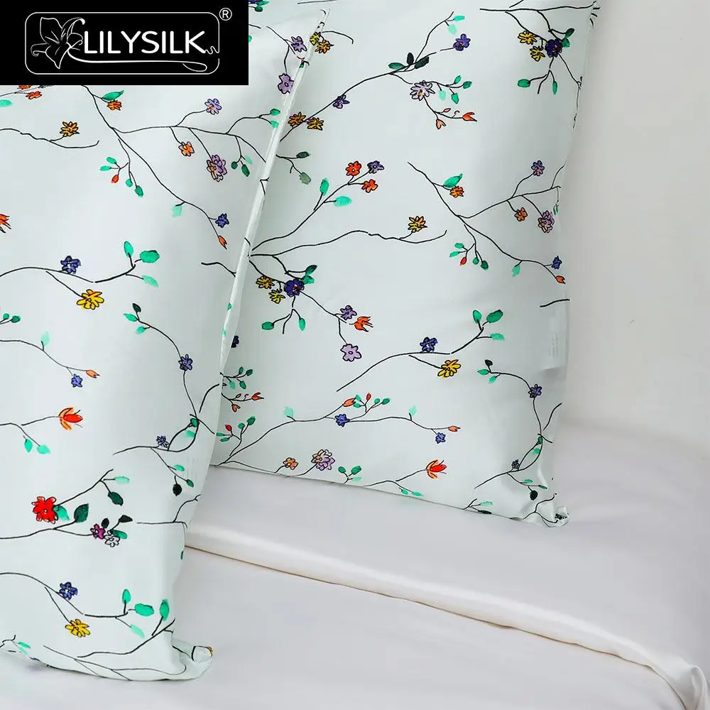 LilySilk Pillowcase 19 Momme Pure 100 Silk Natural for Hair Fresh Spring Print Zipper Terse Mulberry Luxury Beauty Free Shipping