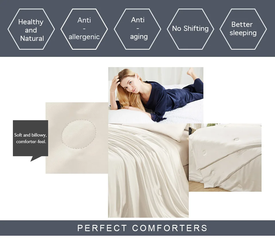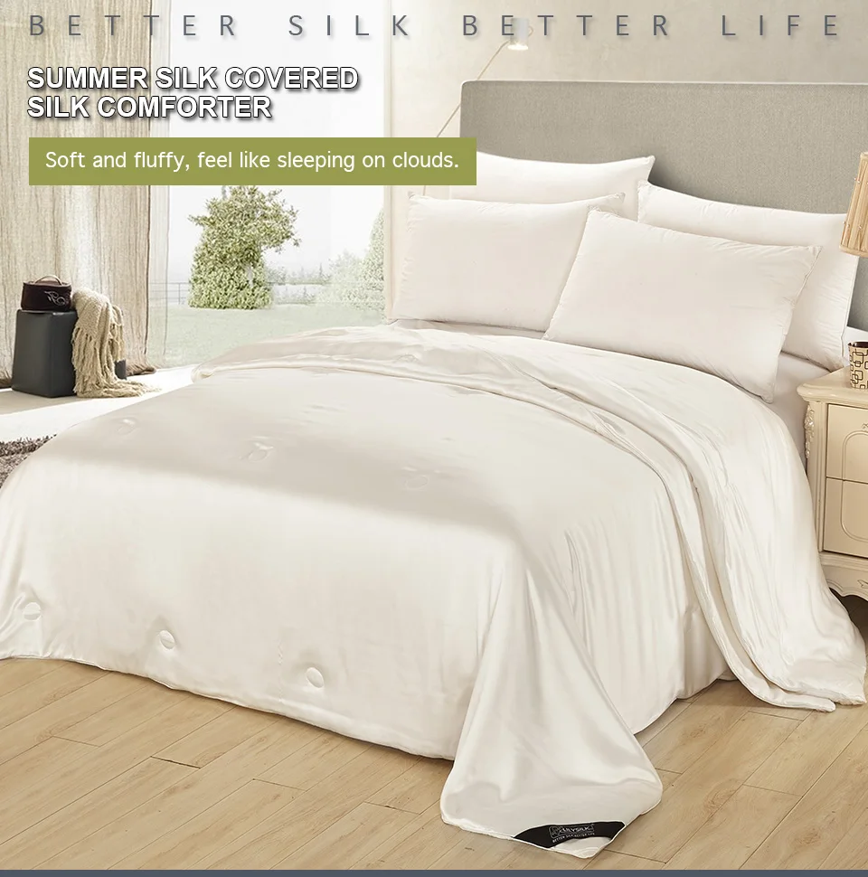 5. Temperature Regulation: Silk is the natural hypoallergenic temperature regulator. Our summer comforter could avoid the sweating in hot summer night and keep your body temperature at comfortable level.
