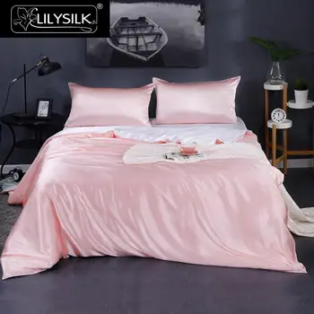LilySilk 100 Silk Duvet Cover Natural 19 Momme Luxury Contrast Color Queen King Home Textile Free Shipping