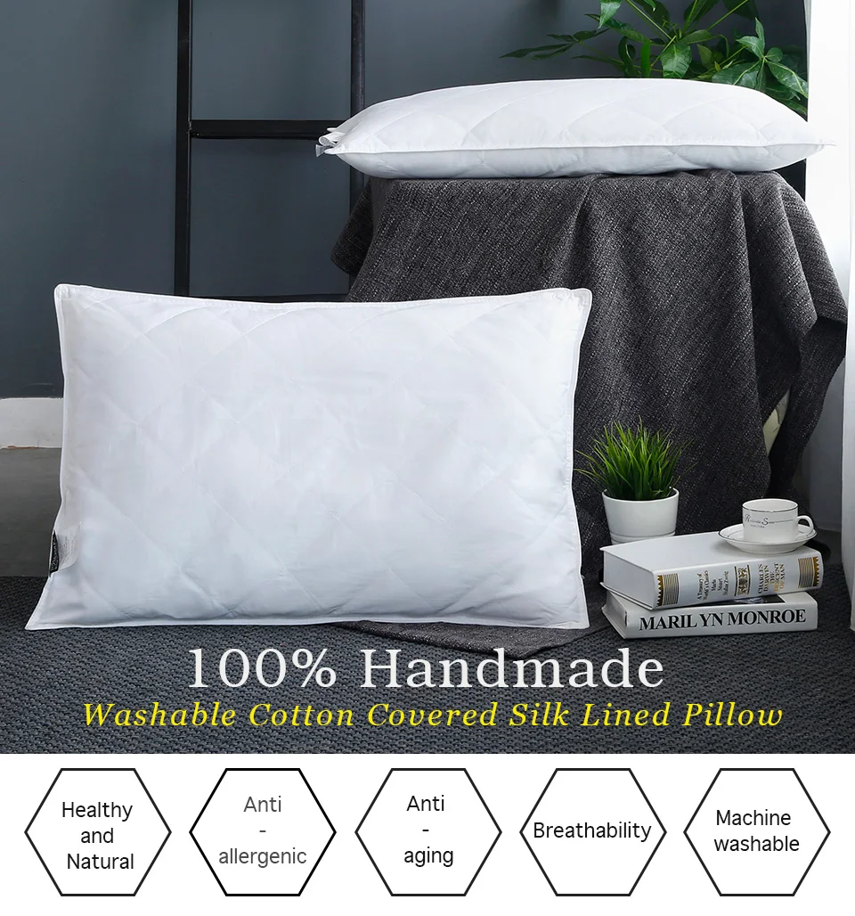 LilySilk Silk Lined Pillow Washable Cotton Covered for Sleeping Height 16cm Home Textile Free Shipping