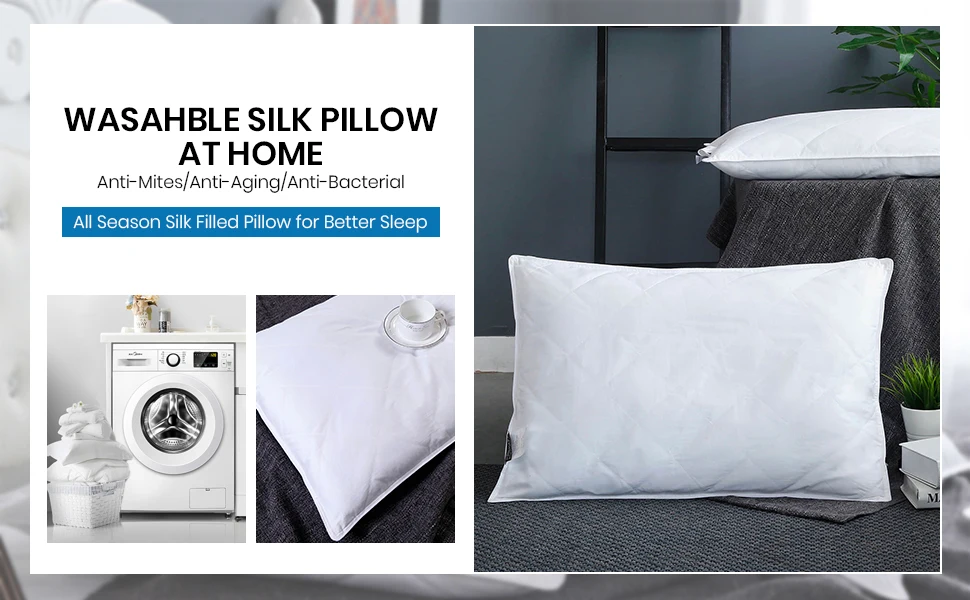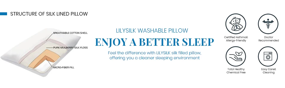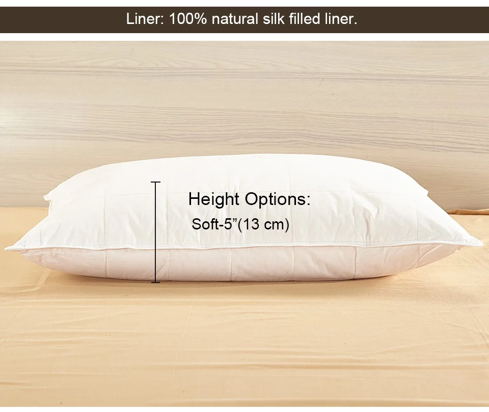LilySilk Lined Pillow 100 Pure Silk Washable Cotton Covered for Sleeping White Height 13cm Home Textile Free Shipping